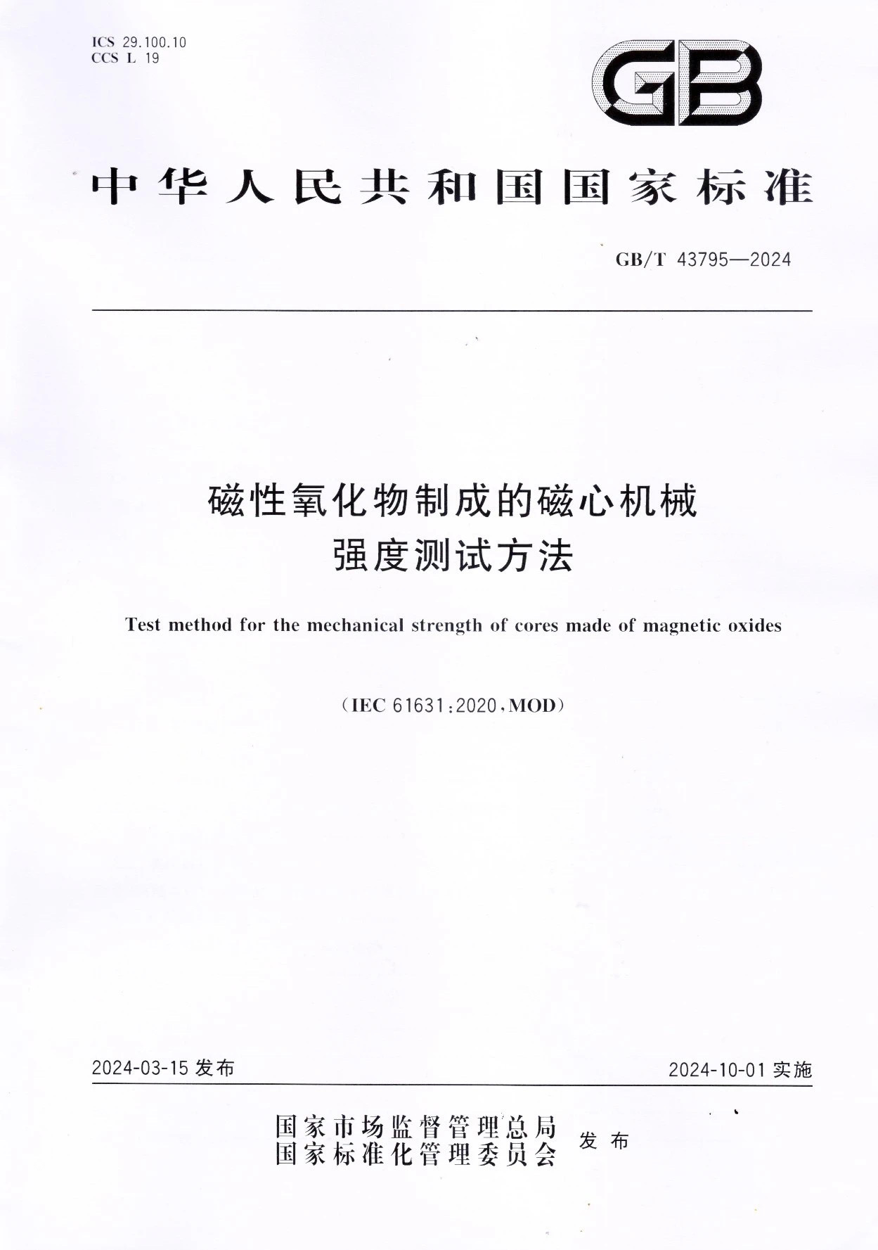 GB/T 43795-2024的正式宣布,,,,将有用资助海内企业完善检测要领,,,,提高产品质量,,,,规范生产和生意行为,,,,推进与国际标准同步,,,,为铁氧体磁心和金属磁粉心工业的科研、生产、应用和商业起到起劲的推行动用。。。。